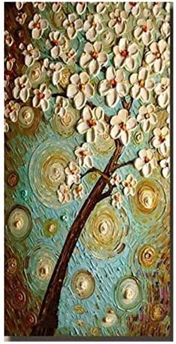 Giow Home Grande Peinture Murale Peinte à la Main avec Couteau Abstrait et Fleurs Blanches Peinture à l'huile Acrylique Faite à la Main 40 x 60 cm: Amazon.fr: Cuisine & Maison
