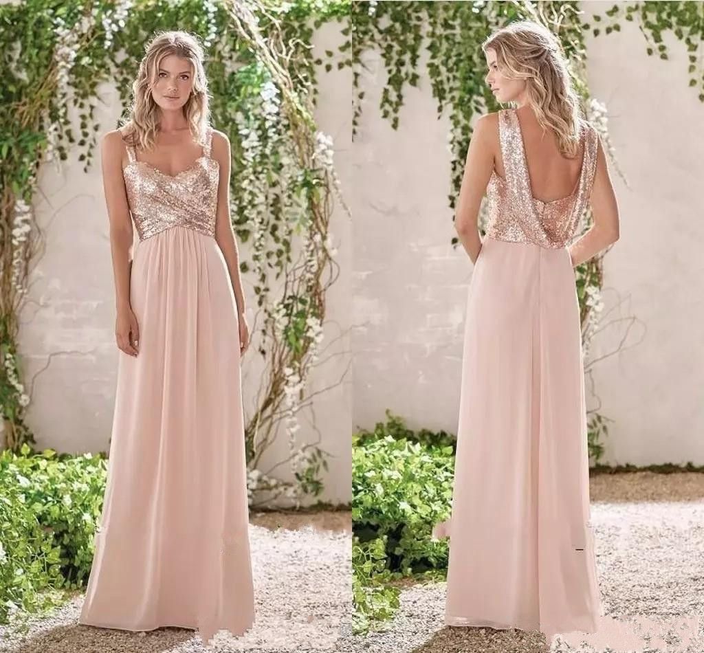 2020 Rose Gold Bridesmaid Dresses A Line Spaghetti Backless Sequins Chiffon Cheap Long Beach Wedding Guest Dress Maid Of Honor Gowns Bargain Bridesmaid Dresses Bridesmaid Dresses Wholesale From Lisa Dress 43 43 Dhgate Com
